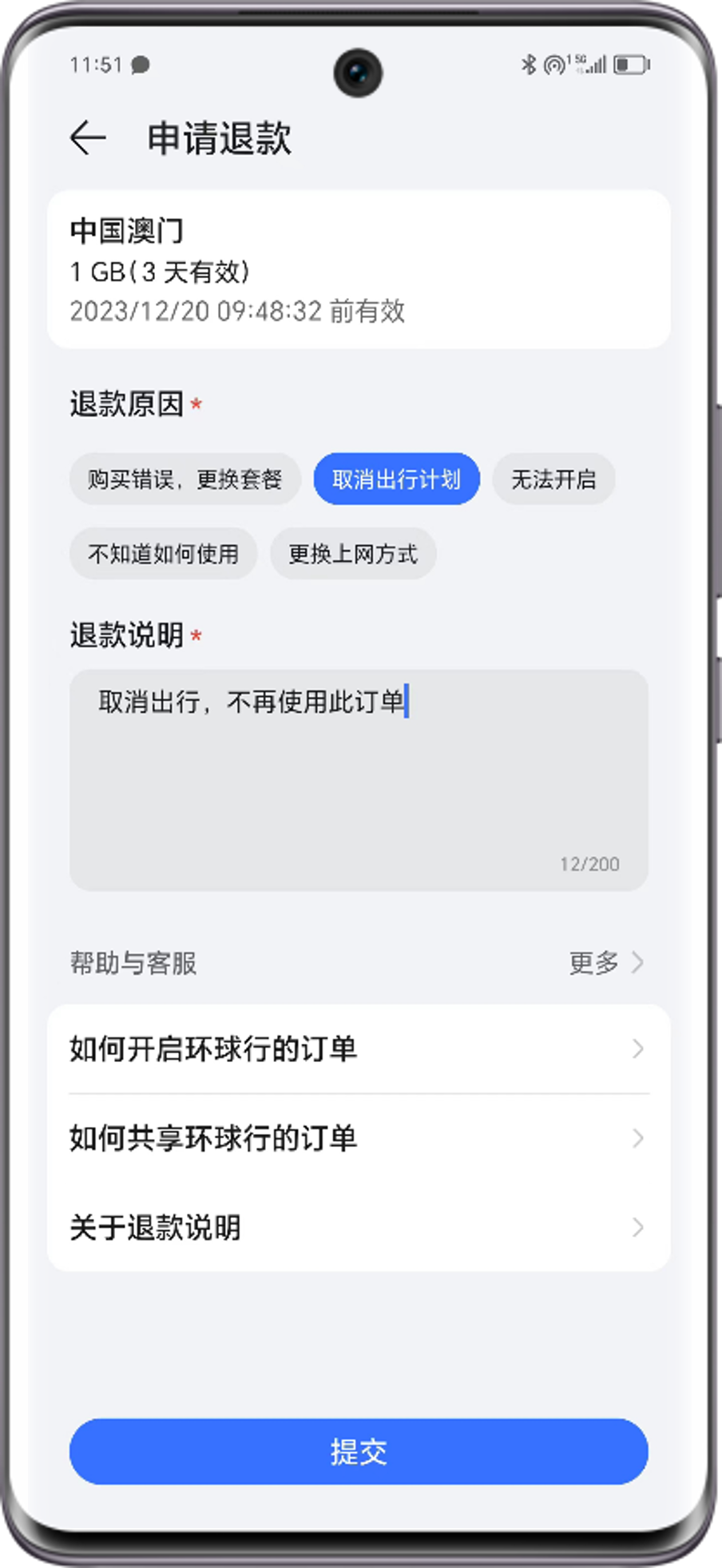 ,填写退款申请信息。您的退款申请将在3-7工作日原路返还。