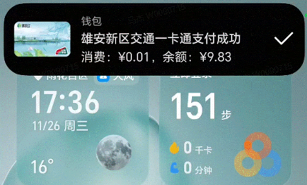 设置完成后,在熄屏状态下双击音量下键可唤起刷卡页,选择需要的卡片后可刷卡。
