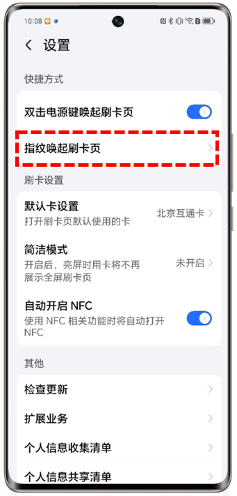 注意:若已在钱包内设置过指纹唤起刷卡页但未正常唤起刷卡界面,请打开系统设置>生物识别和密码>指纹,将卡包快捷支付打开。