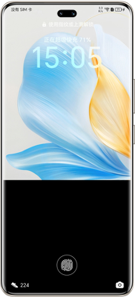 手机锁屏后亮屏,锁屏壁纸下半部分显示黑屏。