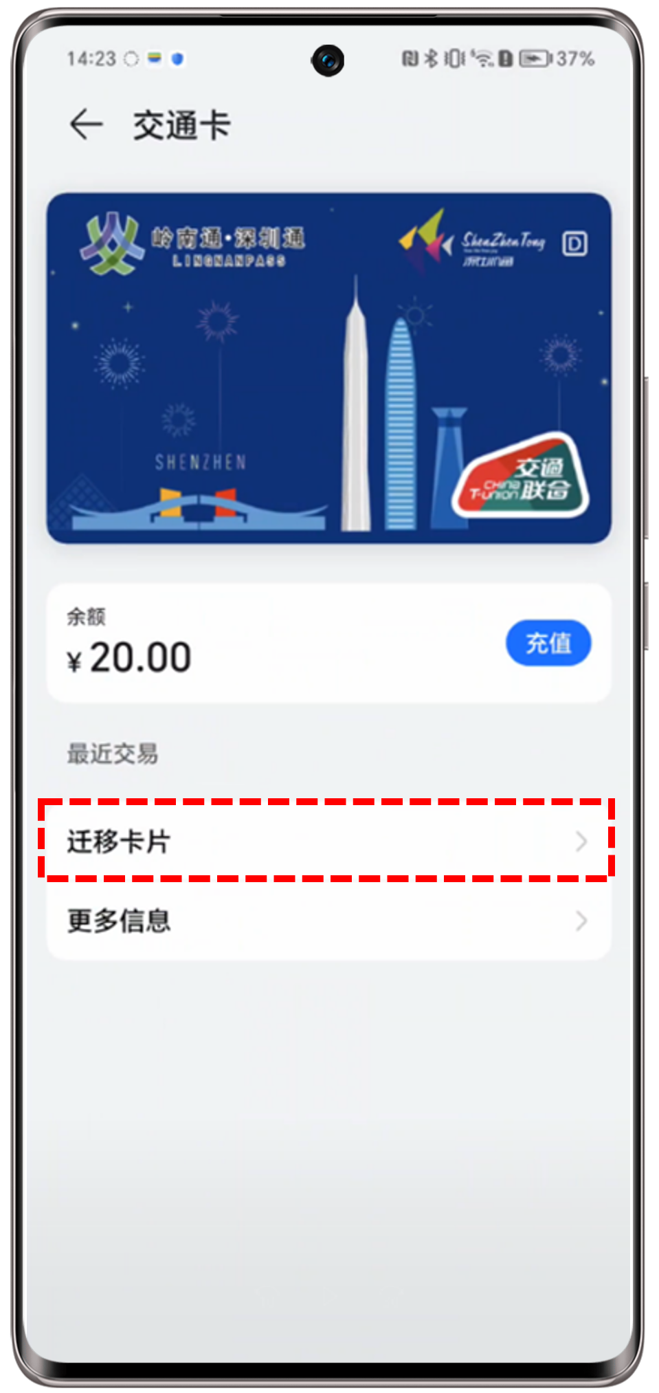 - 交通卡卡片迁移功能需要在良好的网络环境下进行。
