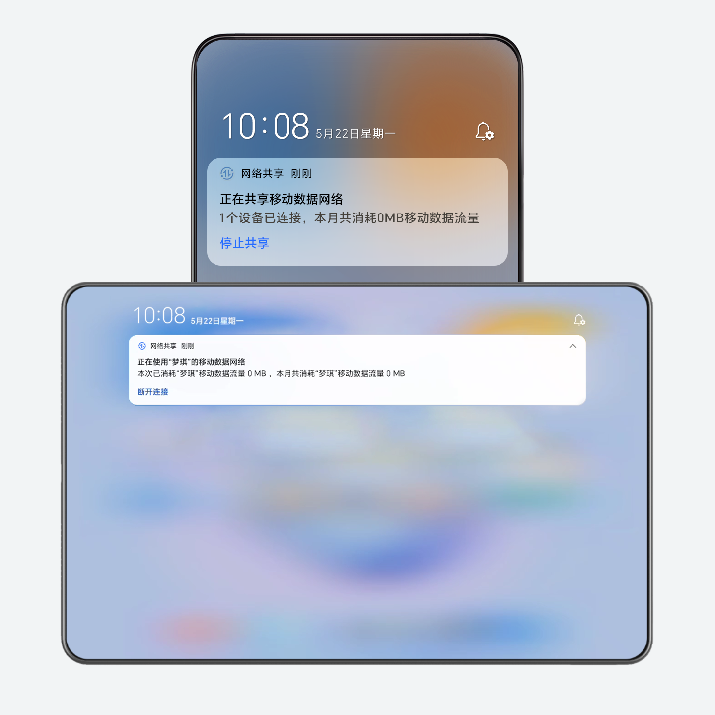 6. 网络共享:平板、电脑等设备可使用本机的移动网络上网。例如,无网络的平板靠近正在使用移动数据网络的手机时,可实现快速联网。