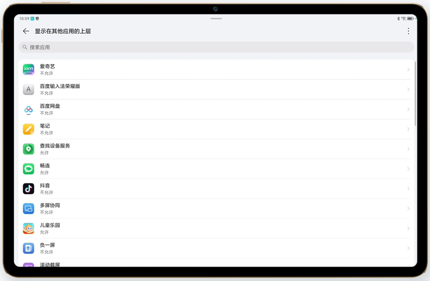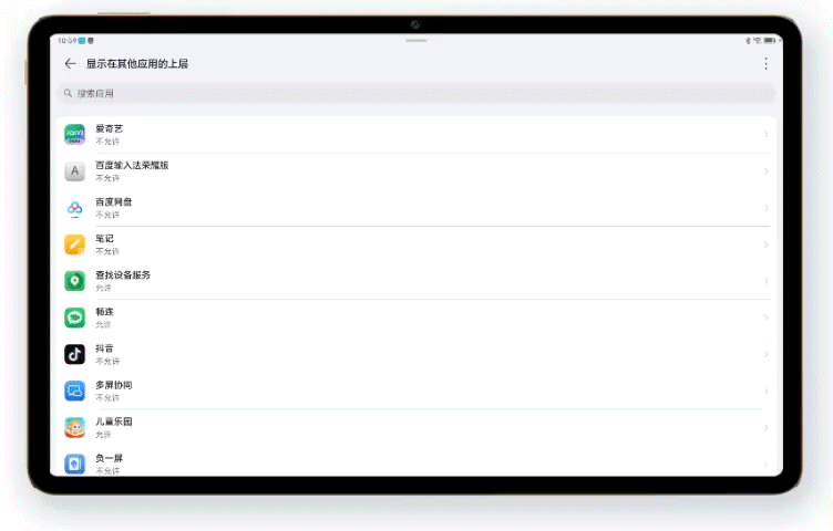 点击平板控制中心多屏协同快捷开关,跳转至显示在其他应用的上层界面