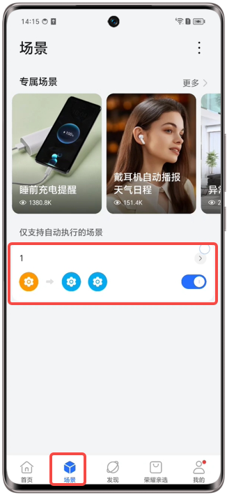 使用荣耀智慧空间创建了“自动调整亮度和护眼模式”的任务。