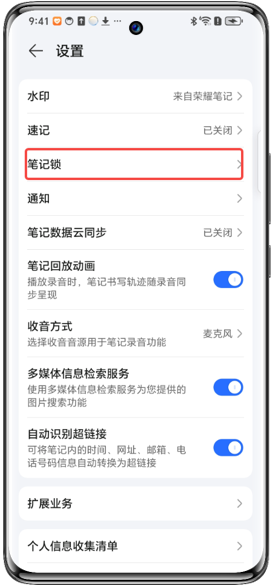 MagicOS 9.0:笔记主列表左上角抽屉按钮>“设置”>笔记锁>加锁笔记显示方式。