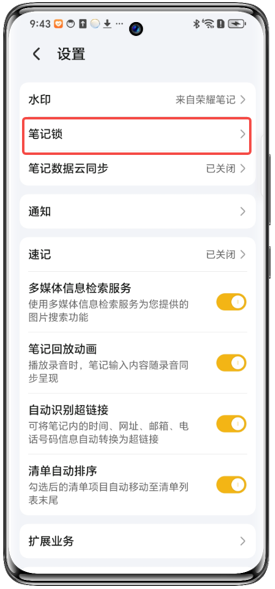 MagicOS 8.X:笔记主列表右上角更多按钮>设置>笔记锁>加锁笔记显示方式。