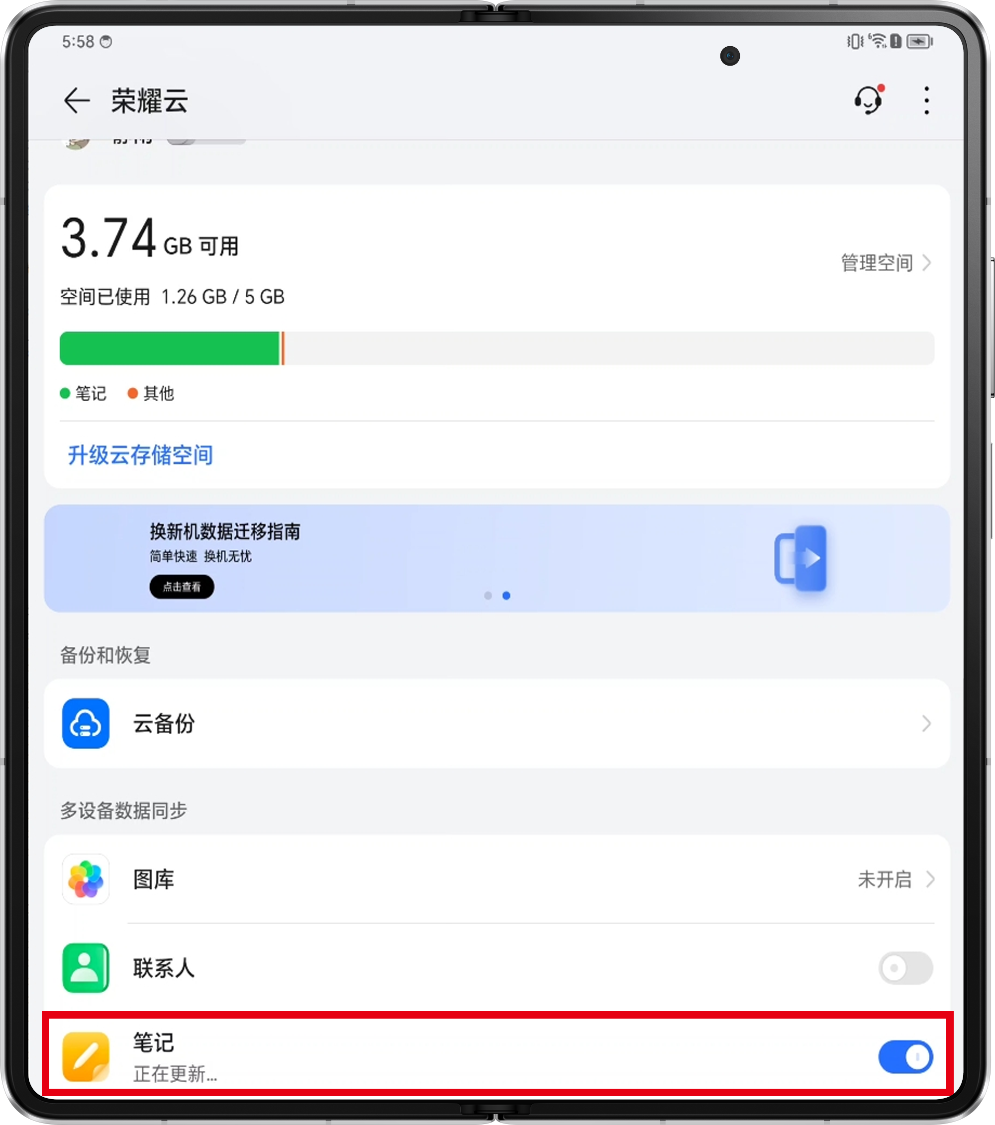 请重新登录荣耀账号,并开启笔记荣耀云同步: