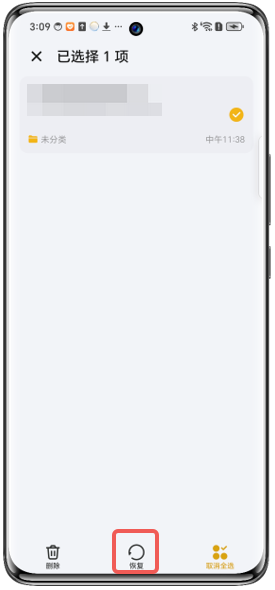 如果误删到“最近删除”中,请选中笔记,选择“恢复”,笔记会回到列表中。