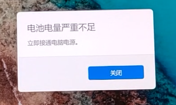 笔记本桌面提示电池电量严重不足且弹框不消失