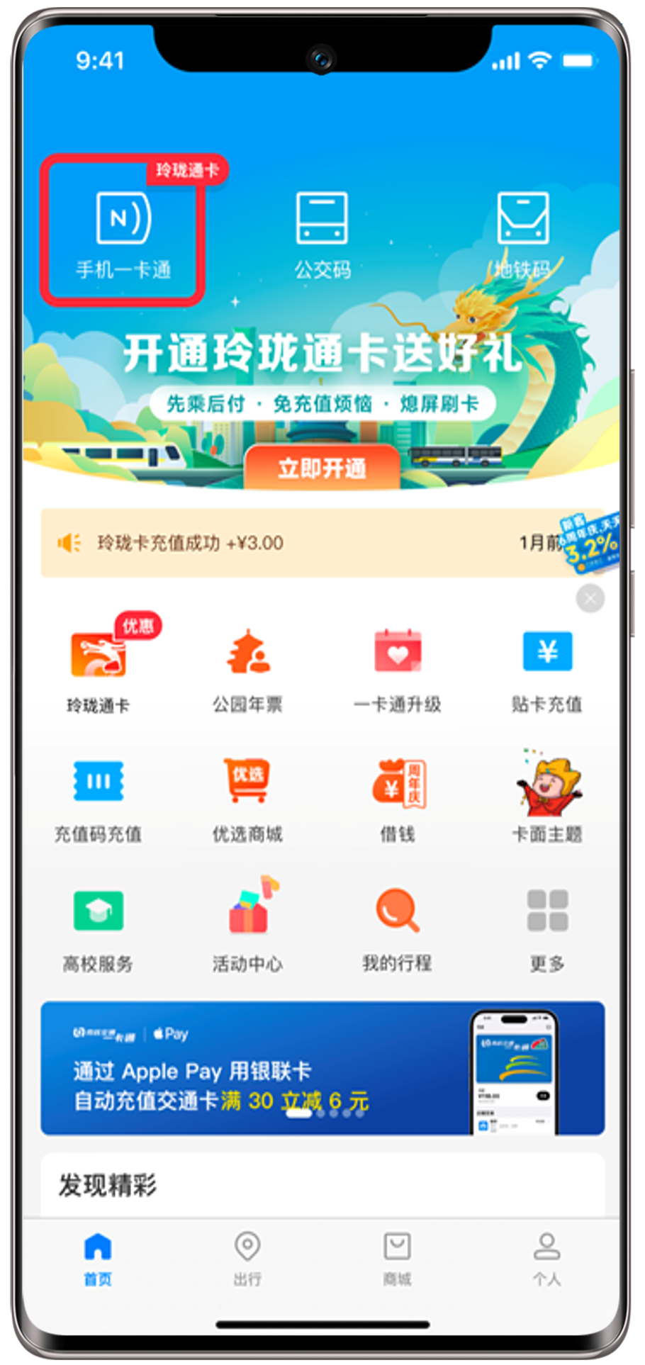 在荣耀钱包开通和使用北京一卡通“玲珑通卡”