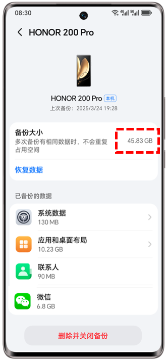 荣耀云备份数据的大小与实际恢复的数据大小不一致