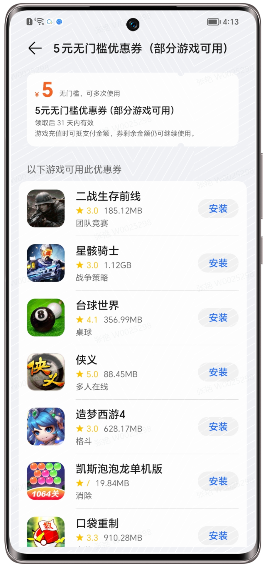 优惠券仅支持部分游戏使用,在支持使用的游戏中消费时,优惠券将自动展示。您可以在点击券面查看可供使用的游戏及详细规则。