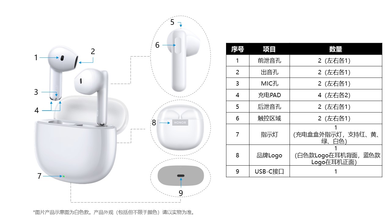 荣耀Earbuds A 外观图