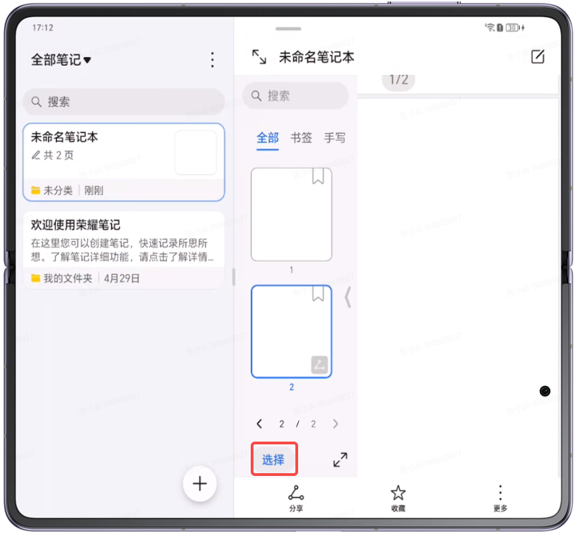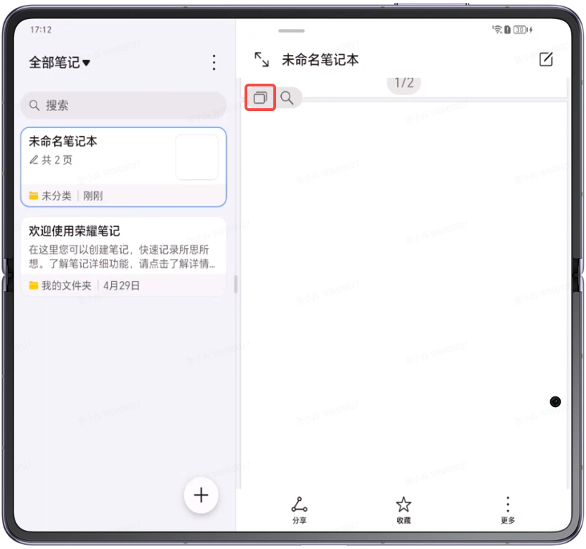 荣耀笔记手写笔记如何删除其中某一页。
