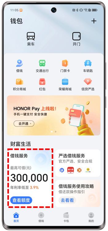入口一:荣耀钱包App>借钱