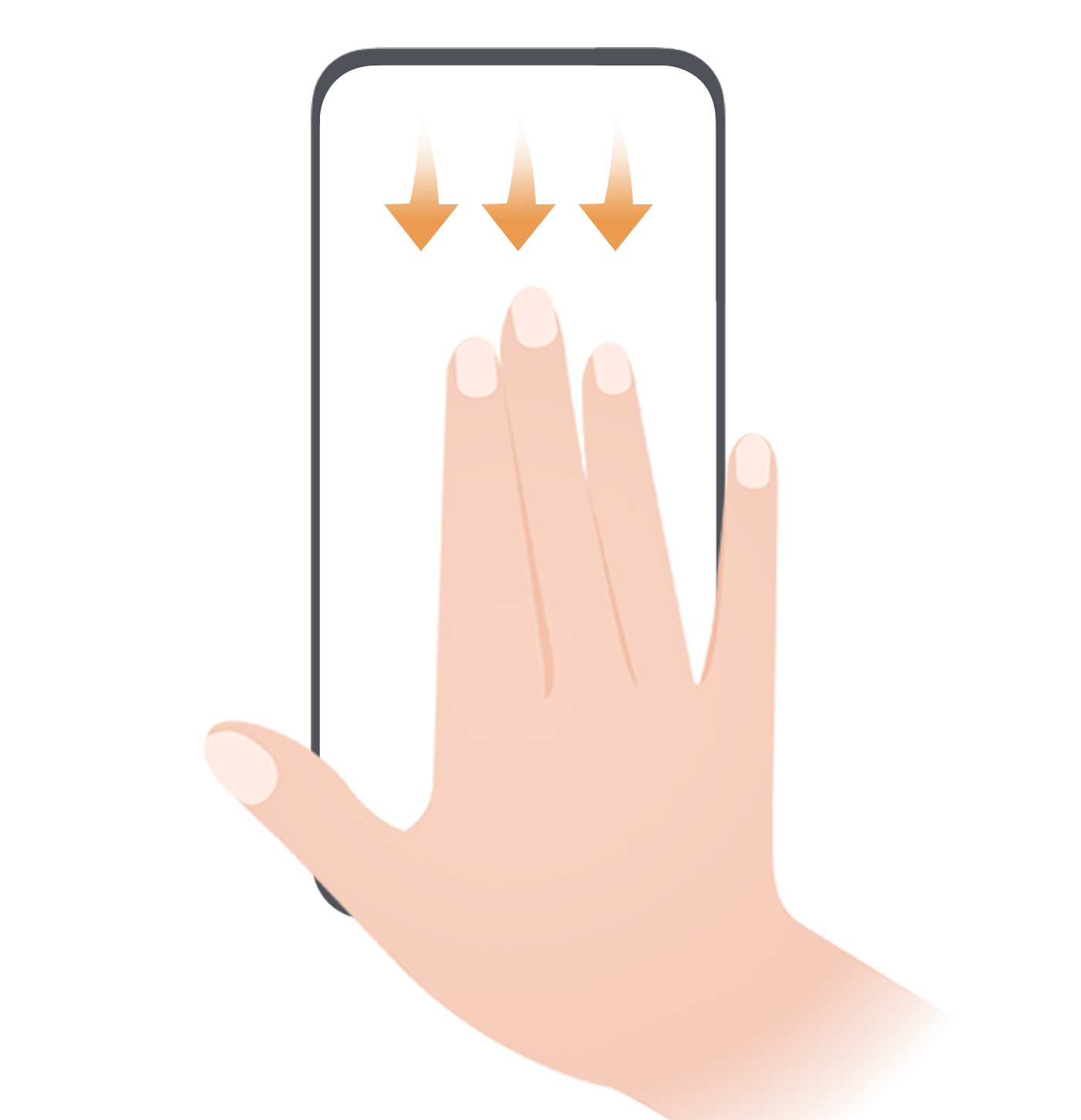 三指下滑截屏 三指沿图示方向下滑屏幕截屏 |