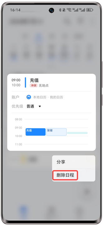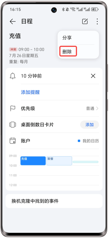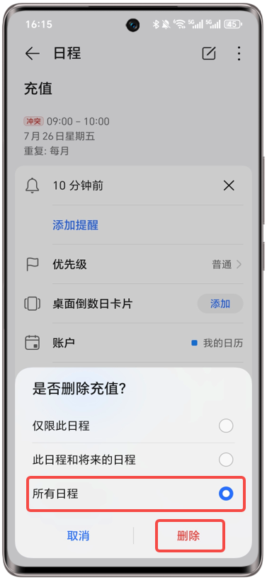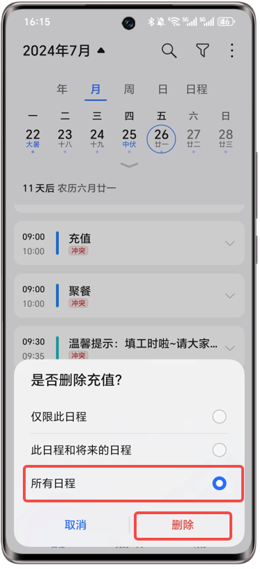 日历重复日程无法删除。