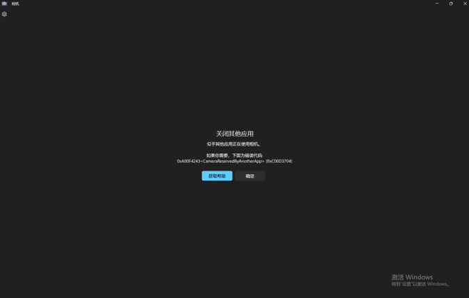 - 使用分离式摄像头插拔引起异常如下图所示的黑屏、应用被占用或者其他错误,应该怎么办?