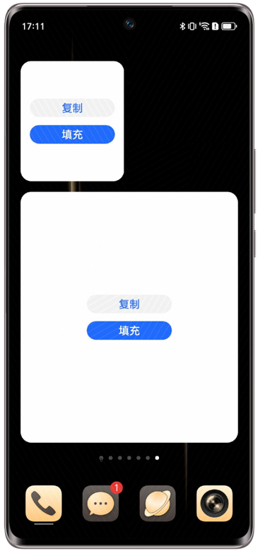 - 填充:点击填充,页面自动跳转到已经拥有的小组件页面,选择组件可添加至桌面。
