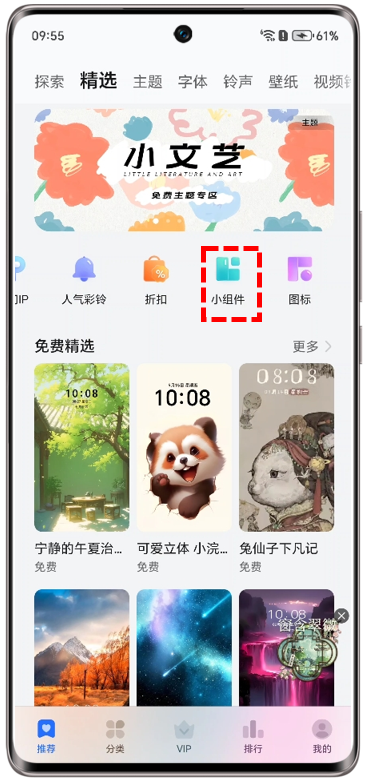 - 进入荣耀主题APP>推荐>精选>小组件下载小组件,然后点击应用将其添加至桌面。