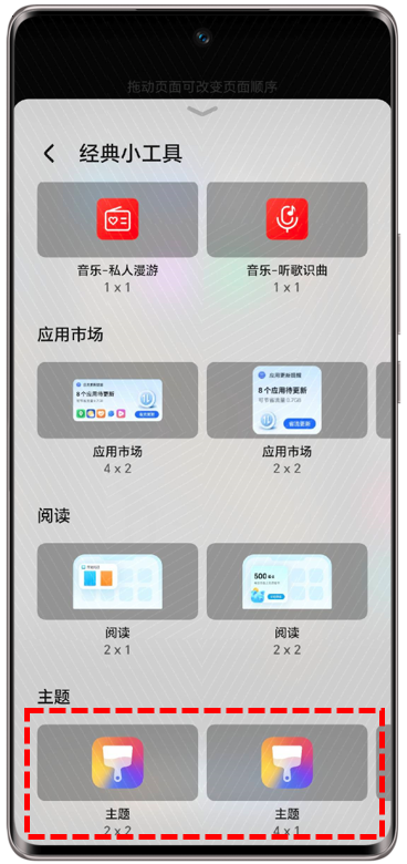 - 下载小组件后,双手捏合桌面>桌面卡片>下划找到并点击"经典小工具">下划找到主题>左右划动选择组件后,桌面会新增一个空白组件>填充>选择需要添加的小组件。