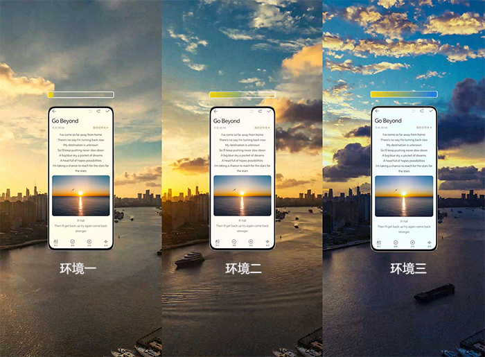 手机会根据环境智能调节屏幕色彩,提供人眼最熟悉的纸张般的观阅体验,缓解用眼疲劳。