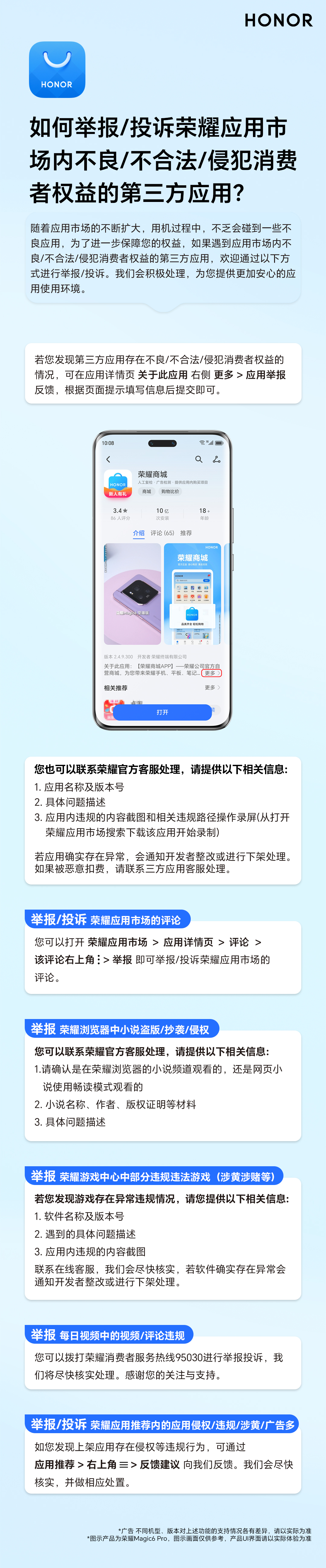 如何举报/投诉荣耀应用市场内不良/不合法/侵犯消费者权益的第三方应用?