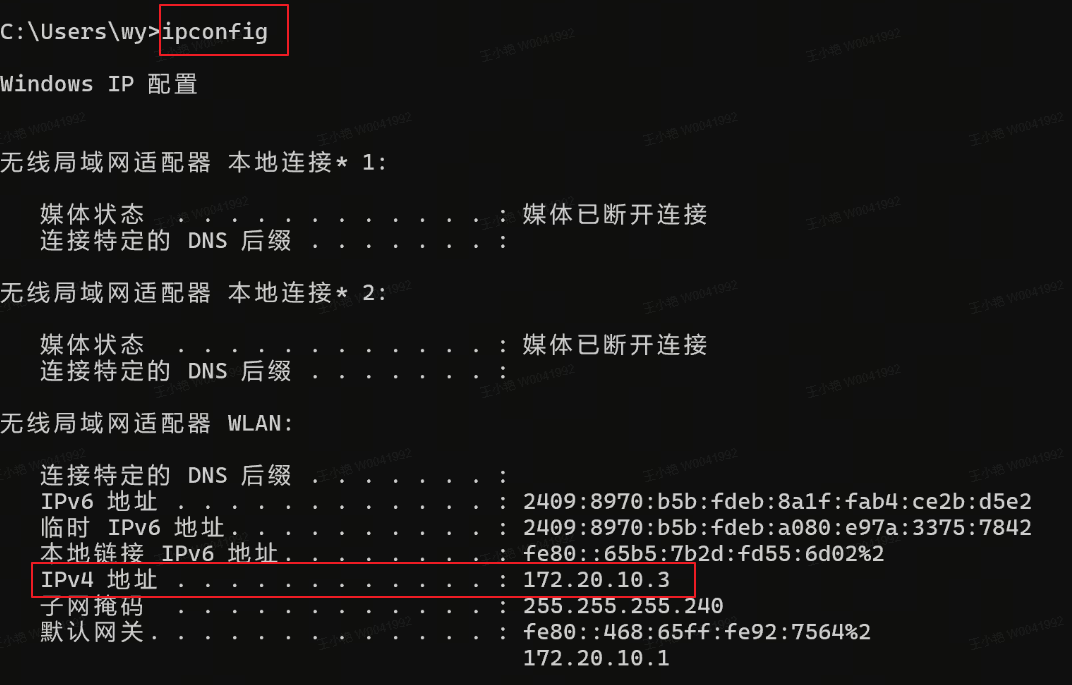 PS:如何查看笔记本IP地址,在搜多框打开CMD输入ipconfig即可。