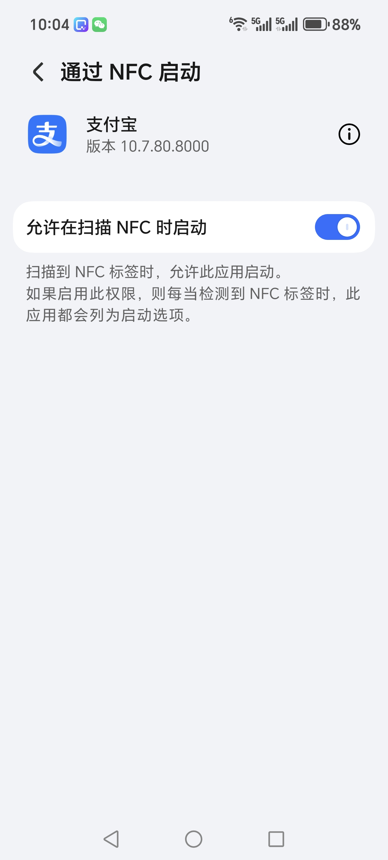 - 允许支付宝通过NFC启动