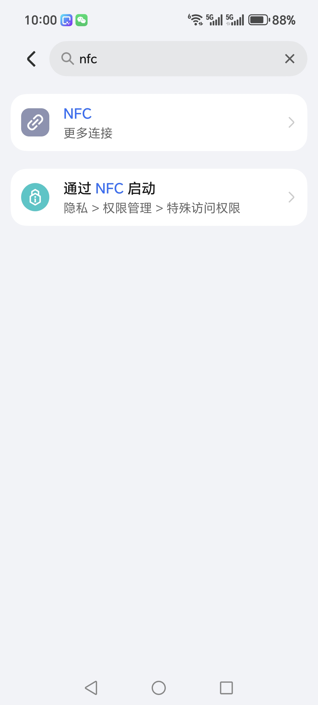 在“设置”APP中搜索NFC,点击“通过NFC启动”,在列表中找到支付宝并设置为“允许”。