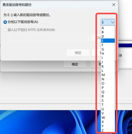 在分配以下驱动器号(A),选择要更改的名称。