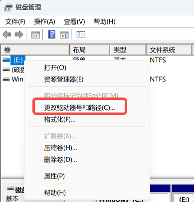 右键单击需要修改的盘符,选择