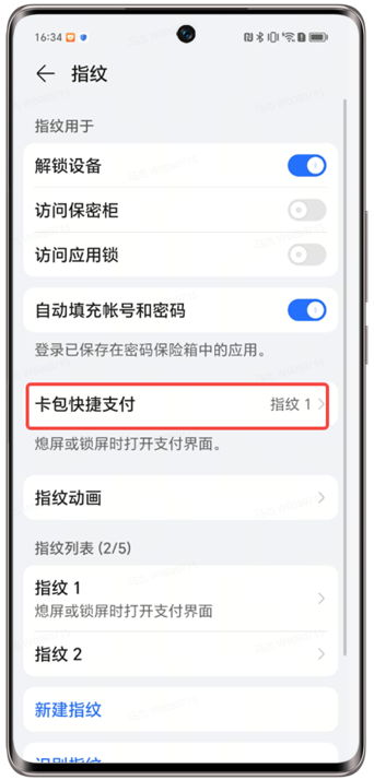 可能是您将该指纹设置成了钱包快捷付款指纹,而不是解锁指纹,因此在熄屏或锁屏时验证该指纹会唤起钱包支付界面。您可关闭或更换钱包快捷付款指纹:系统设置 > 生物识别和密码 > 指纹 > 输入锁屏密码 > 卡包快捷付款 > 关闭卡包快捷付款(关闭后熄屏或锁屏时无法打开支付界面)或更换成其他指纹(例如,如果您习惯用指纹1解锁屏幕,建议您将钱包快捷付款指纹设置为指纹2)