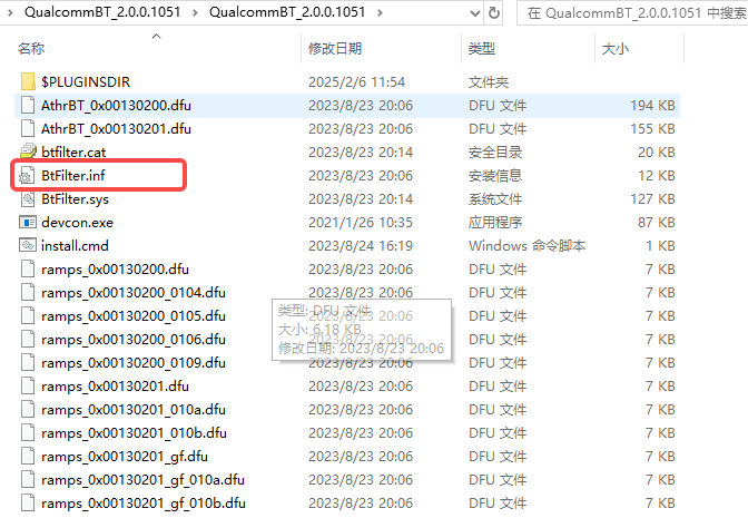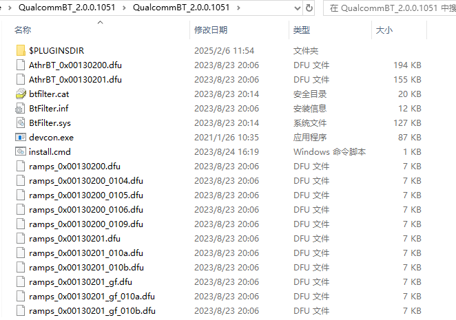 高通驱动的机子解压开是QualcommBT_xxx_.exe。