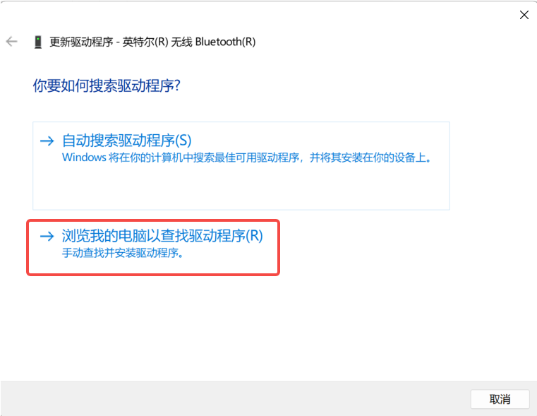 6.然后选择“浏览我的电脑以查找驱动程序”。