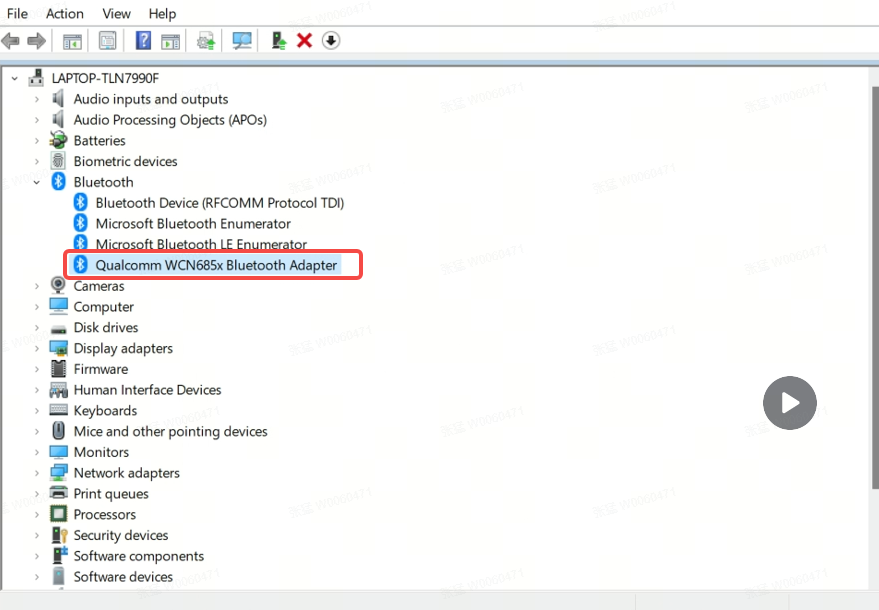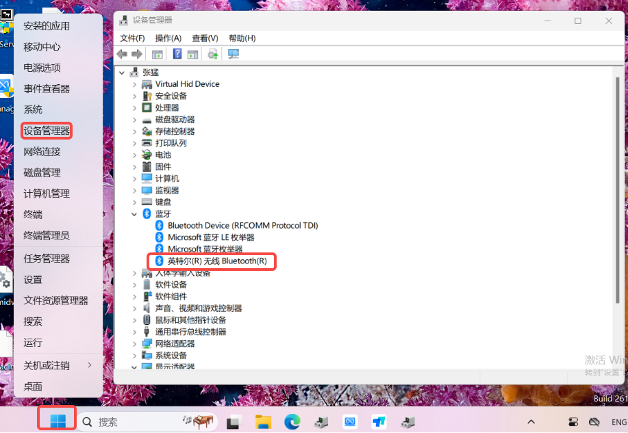 如何判断蓝牙驱动是Intel还是高通,如下图,右键Windows图标,点击“设备管理器”,蓝牙里显示“英特尔(R)无线Bluetooth(R)”是Intel驱动,显示“Qualcomm WCN685x Bluetooth Adapter”或者“Qualcomm FastConnect 6900 Bluetooth Adapter”是高通驱动。