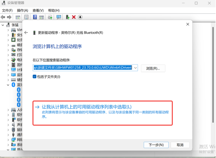 7.然后选择“让我从计算机上的可用驱动程序列表中选取”。