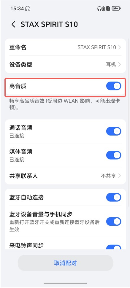 ,关闭高音质开关后重新打开,或者耳机删除配对重新配对。