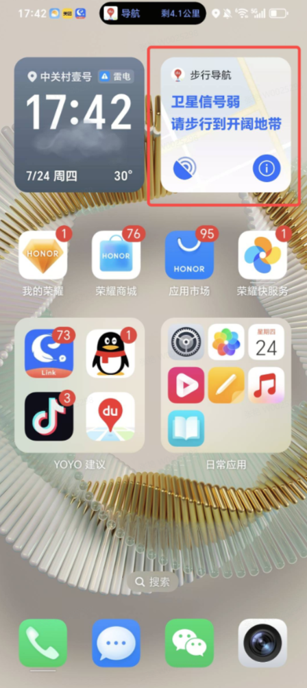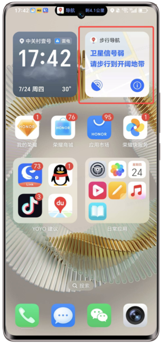 在地图App发起步骑/骑行导航时,YOYO建议会在桌面YOYO建议/负一屏YOYO建议/灵动胶囊/锁屏通知/熄屏显示,实时为您展现导航情况。