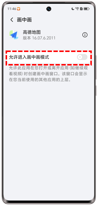 开启画中画权限后,高德地图在后台运行时,桌面会显示悬浮窗小窗,不显示灵动胶囊。