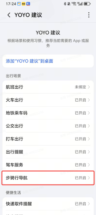 系统设置>荣耀AI & YOYO/智慧助手>YOYO建议>步骑行导航开关保持打开