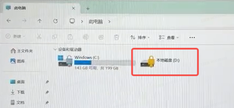 3.开启设备加密功能,并进行系统还原后,发现其他盘符(如D/E等盘)为加密状态