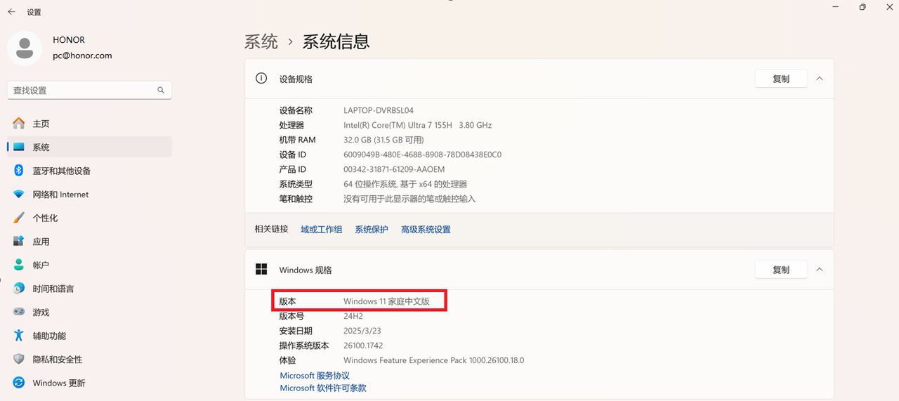 为了用户数据安全,从2025年中开始生产的荣耀家庭版笔记本,出厂默认开启Windows设备加密功能。
