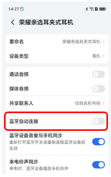 关闭蓝牙设备详情中的蓝牙自动连接开关,蓝牙设备上电/开机后,仍然与手机自动连接。
