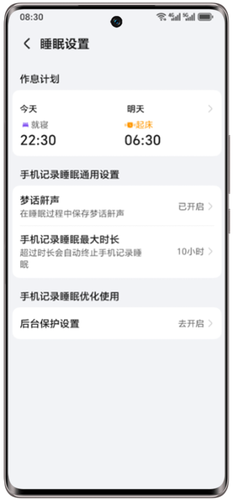 | 荣耀运动健康中,手机记录睡眠功能 |