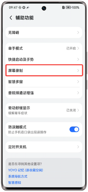 进入设置>辅助功能>屏幕录制,或直接在设置中搜索并进入“屏幕录制”,打开“录屏隐藏通知”开关。