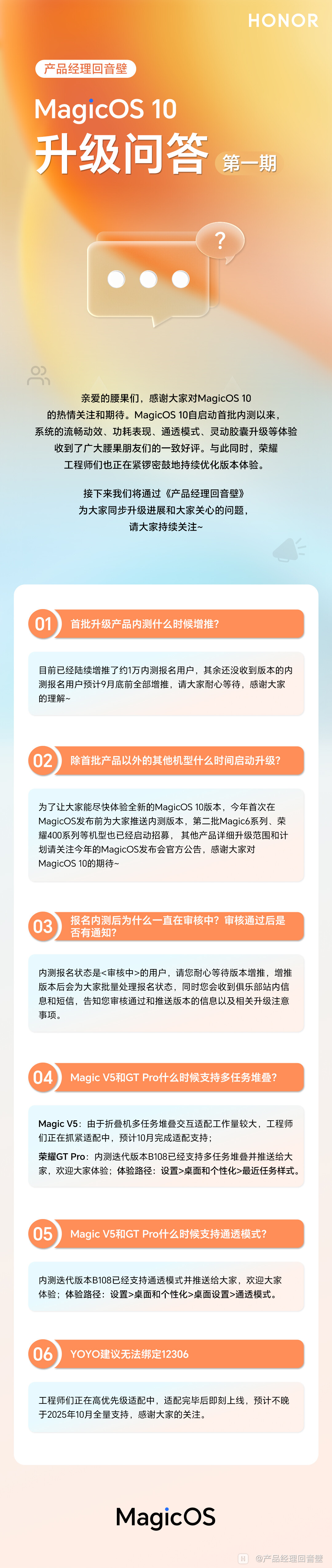 产品经理回音壁丨MagicOS 10升级问答第一期