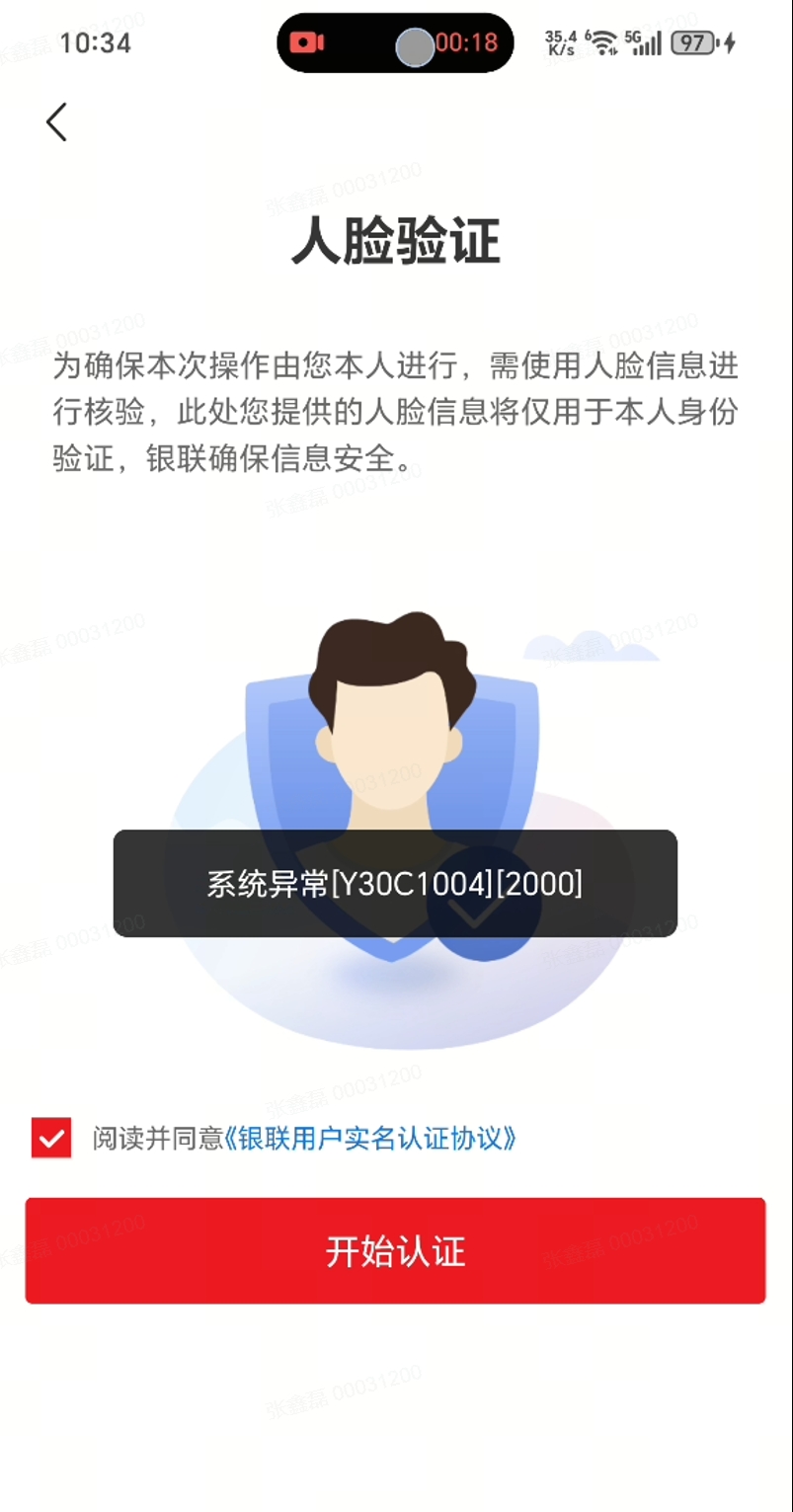 荣耀钱包添加银行卡时,人脸识别失败,提示系统异常[Y30C1004]