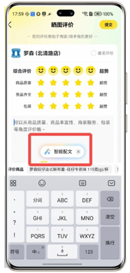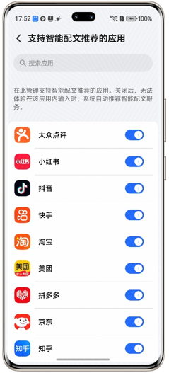 (1)智能配文支持在一些社交、短视频应用的文案创作发布页面,以及电商应用的订单评价页面进行使用,方便用户一键生成合适的文案。目前支持的应用列表如下: