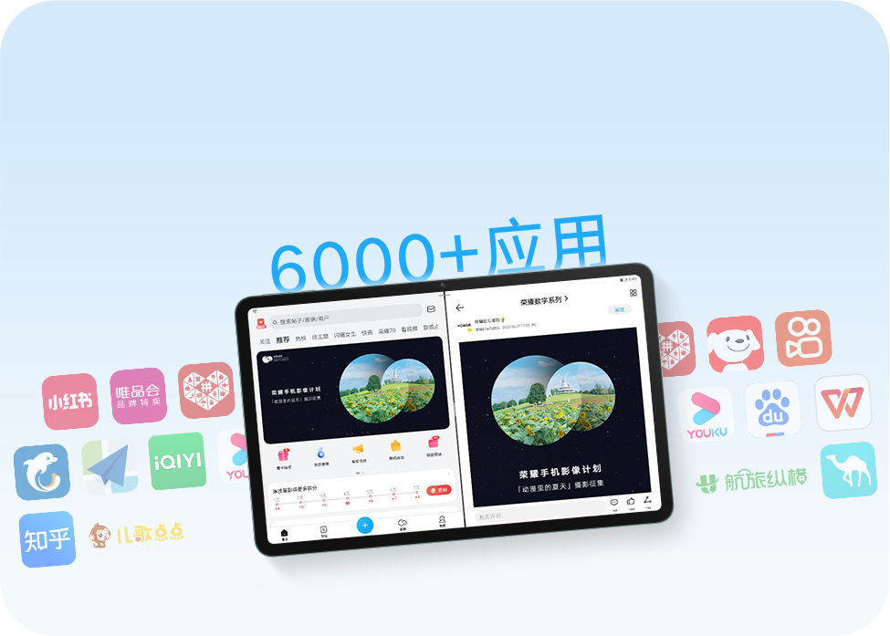 首款支持多屏协同的数字系列荣耀平板,平板与手机同屏交互,图片视频无缝拖拽,轻松把手机收到的作业资料协同到平板上做。